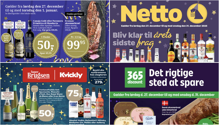 Netto tilbyder Smirnoff Ice, Shaker eller Mokai til en fordelagtig pris af 5 kr. pr. flaske (27,5 cl + pant). Maks. 24 stk. pr. variant pr. kunde pr. dag. Tilbuddet gælder fra lørdag 27. december til onsdag 31. december.